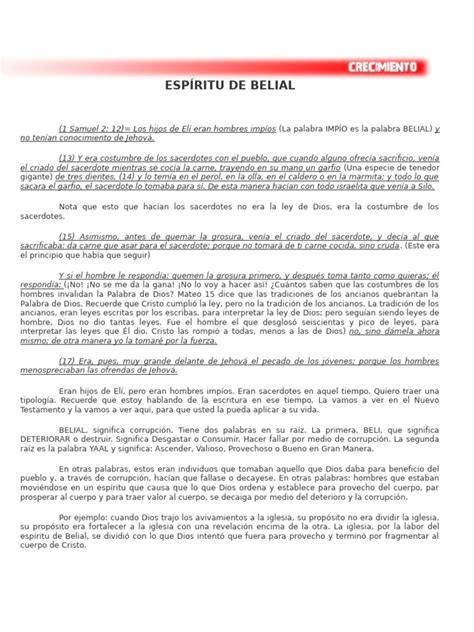 Espiritu De Belial - Web explorar la figura de belial permite a los creyentes entender más profundamente la naturaleza del mal y los desafíos espirituales que enfrenta la humanidad. En la continua lucha entre las fuerzas del bien y del mal, personajes como belial funcionan como recordatorios de la vigilancia y la integridad que se deben sostener en la vida cristiana. ¿y qué acuerdo.